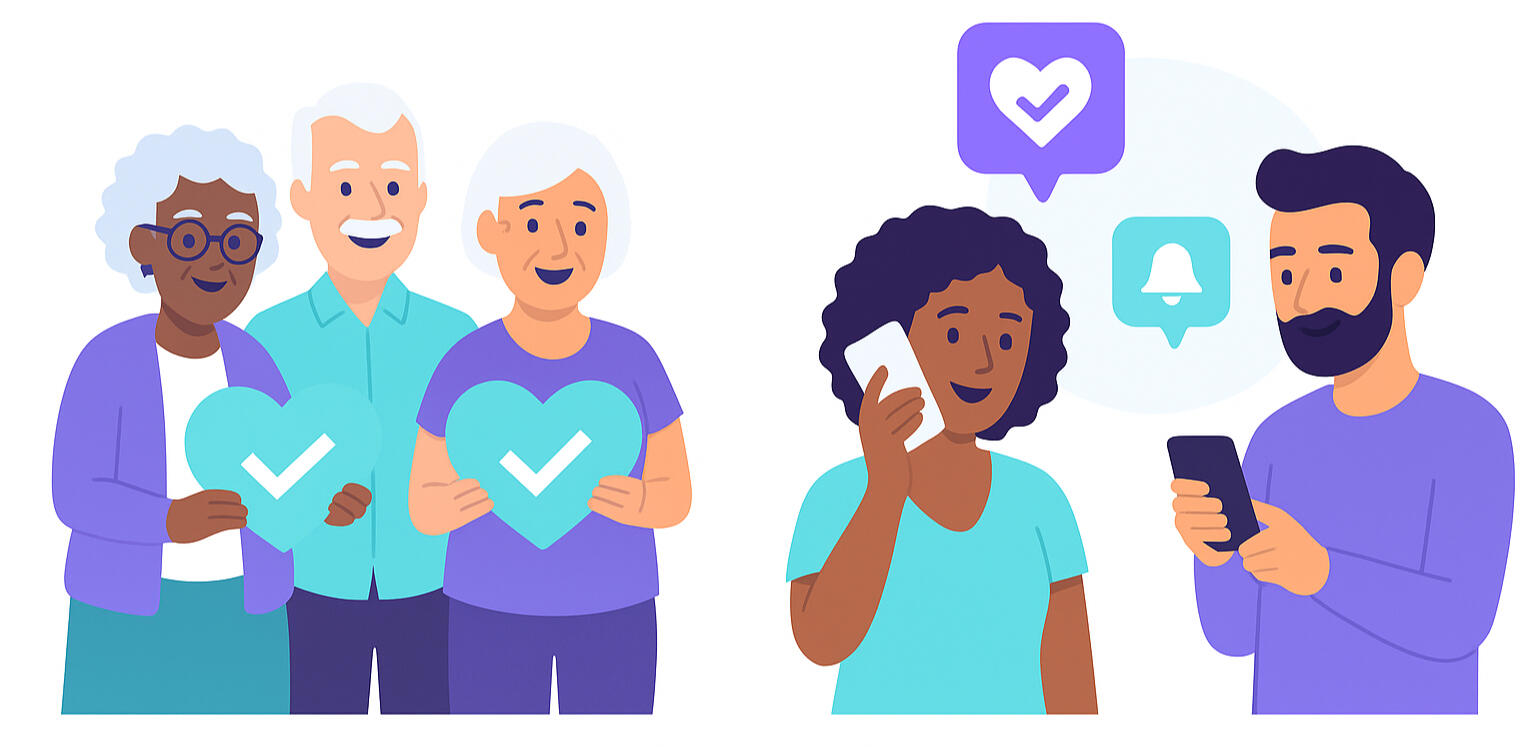 Daily automated phone check-ins for your loved ones, with instant caregiver alerts if there's no answer.